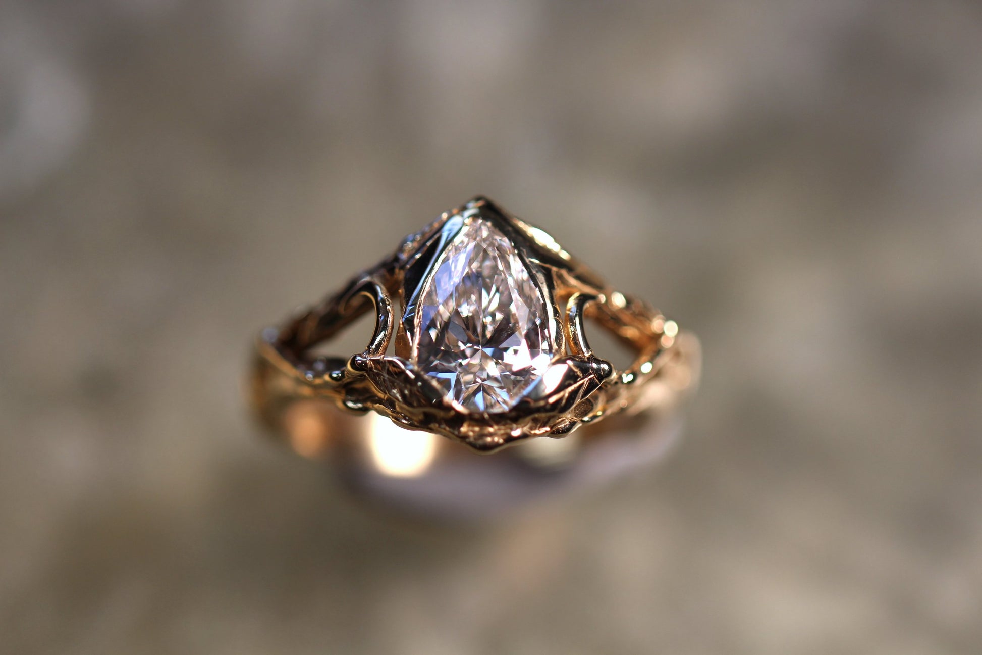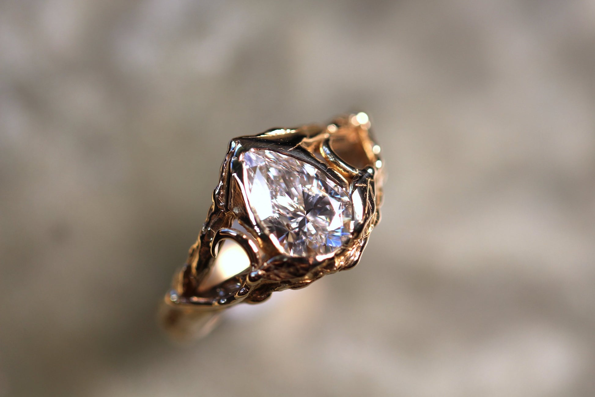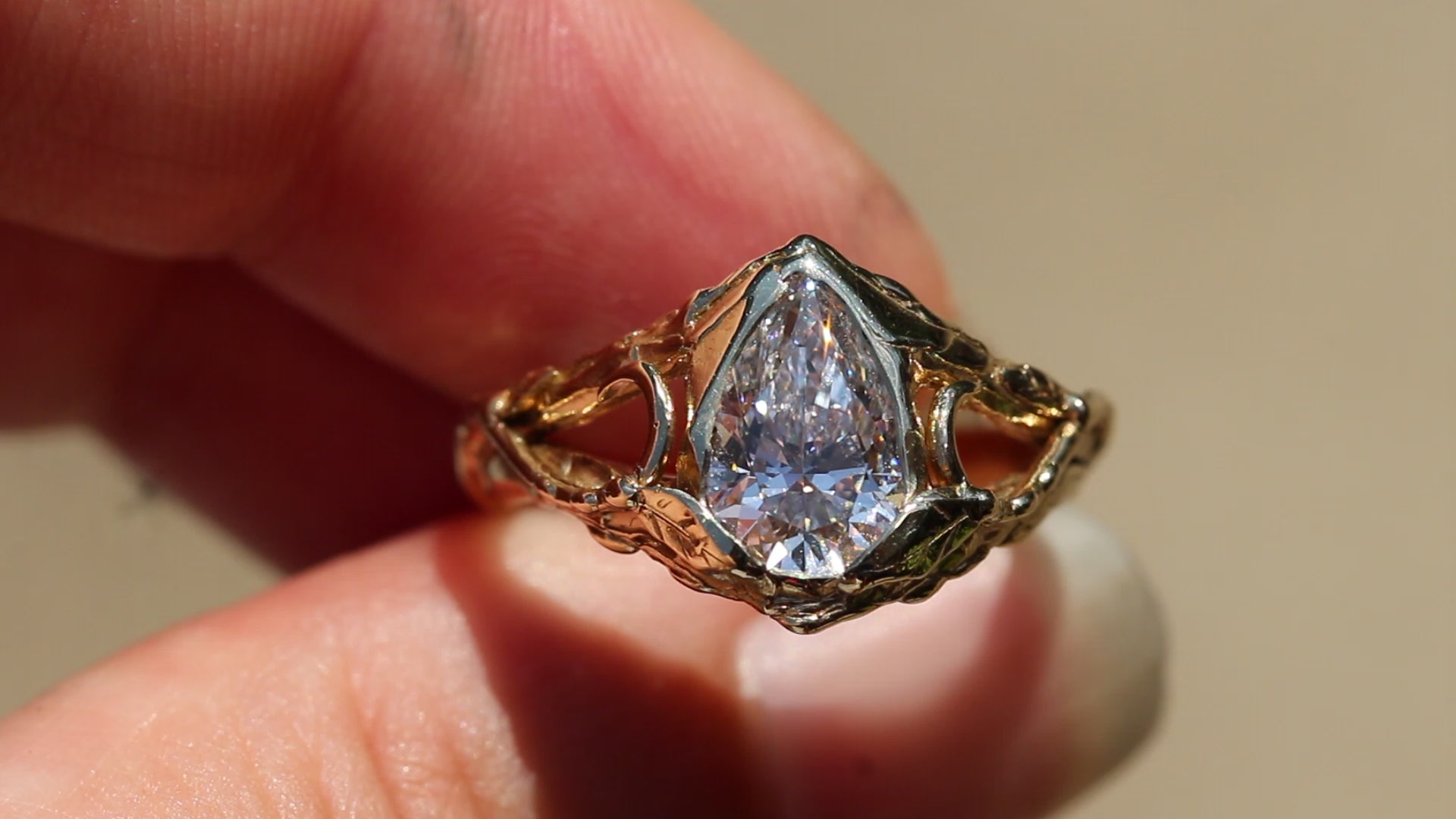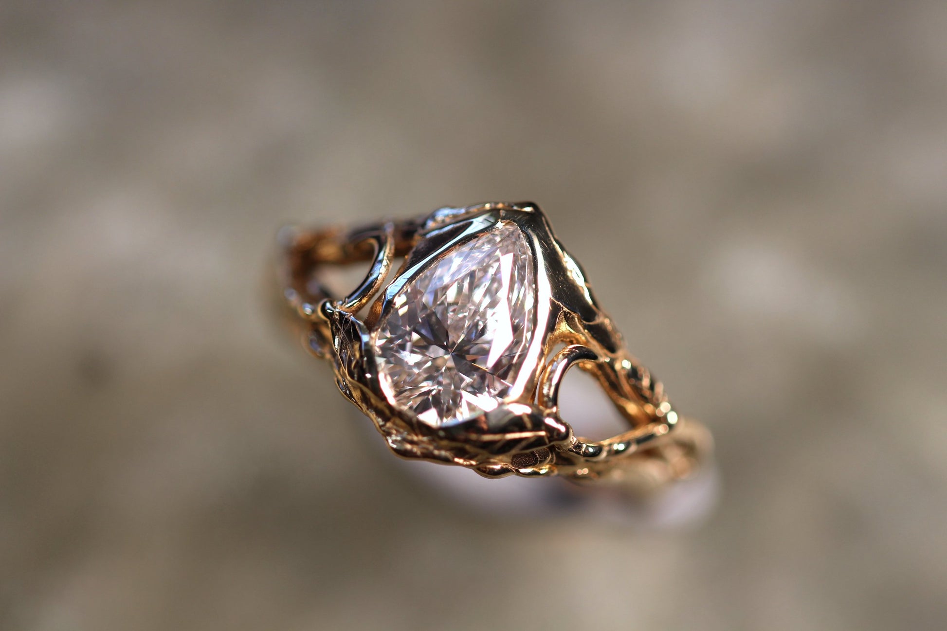 This 1.5ct lab grown diamond and Solid 9ct Yellow Gold ring was made by Australian Jeweller and Opal cutter Chloe Fraser.