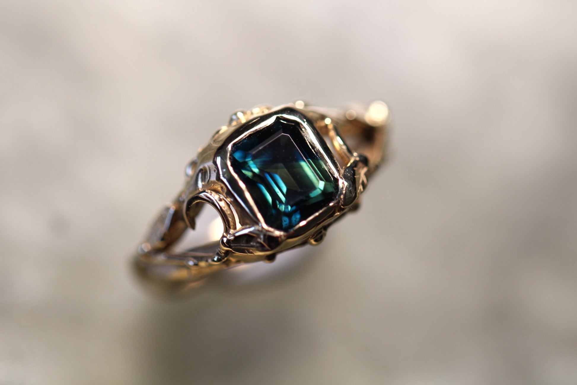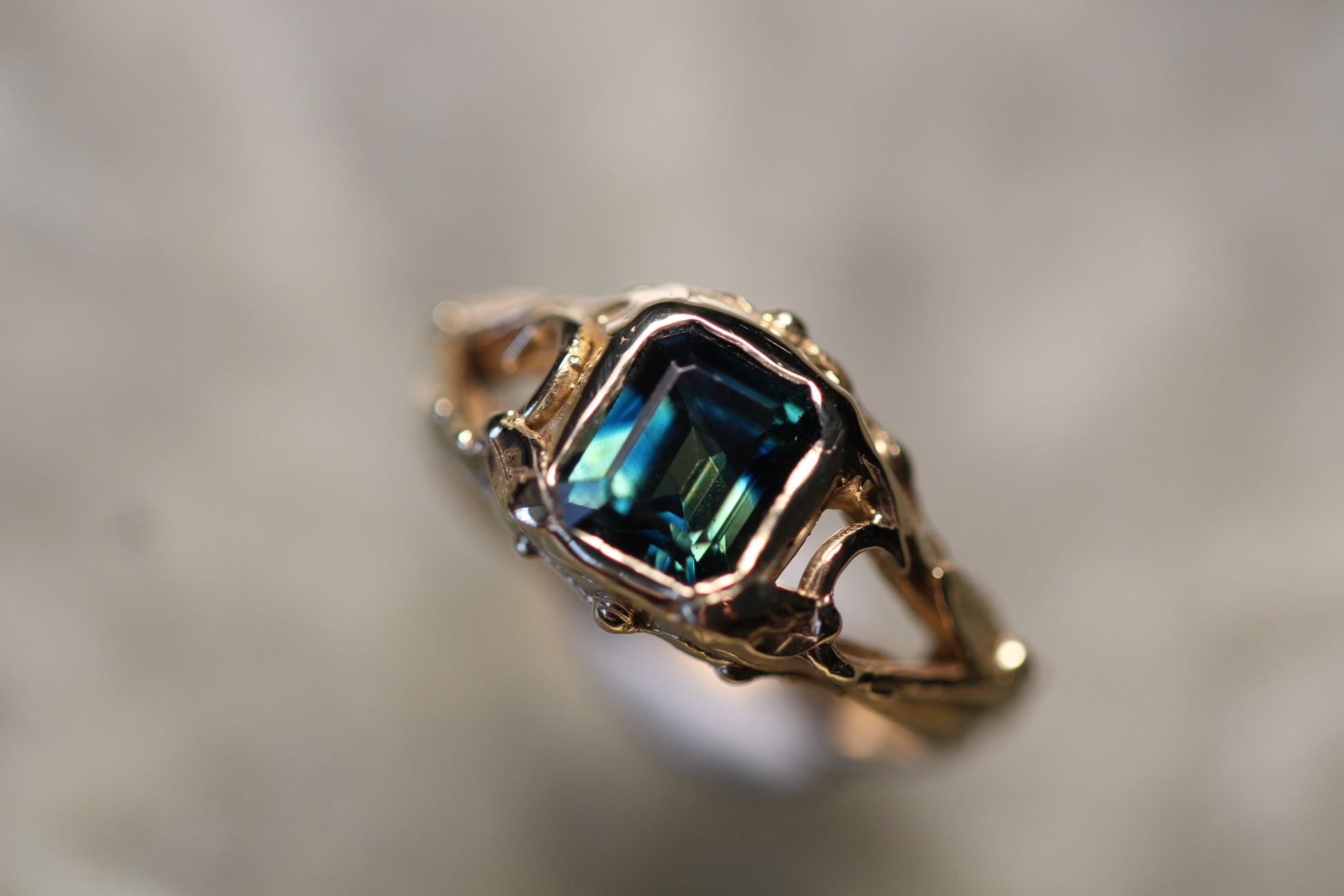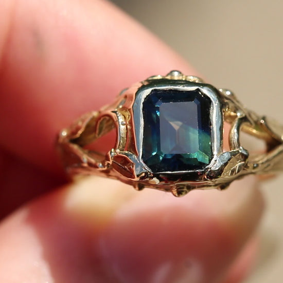 This Australian Parti Sapphire and Solid 9ct Yellow Gold ring was made by Australian Jeweller and Opal cutter Chloe Fraser.