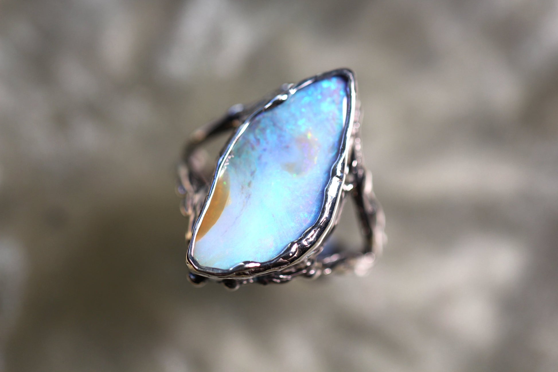 This Boulder Opal and Sterling Silver ring was made by Australian Jeweller and Opal cutter Chloe Fraser.
