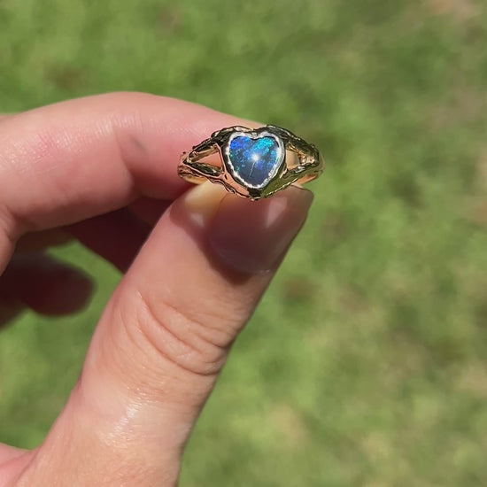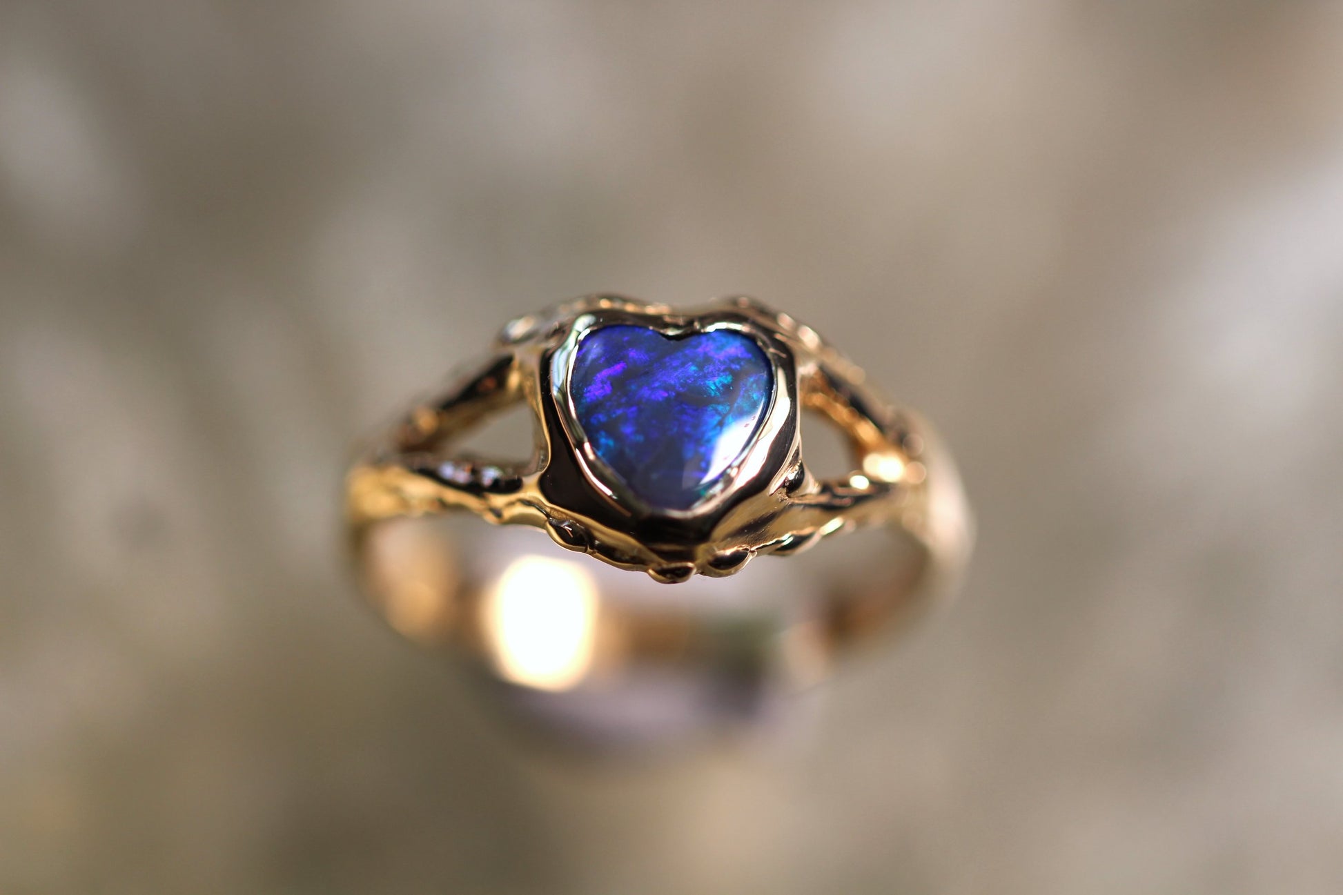 This Lightning Ridge Opal and Solid 9ct Yellow Gold ring was made by Australian Jeweller and Opal cutter Chloe Fraser.
