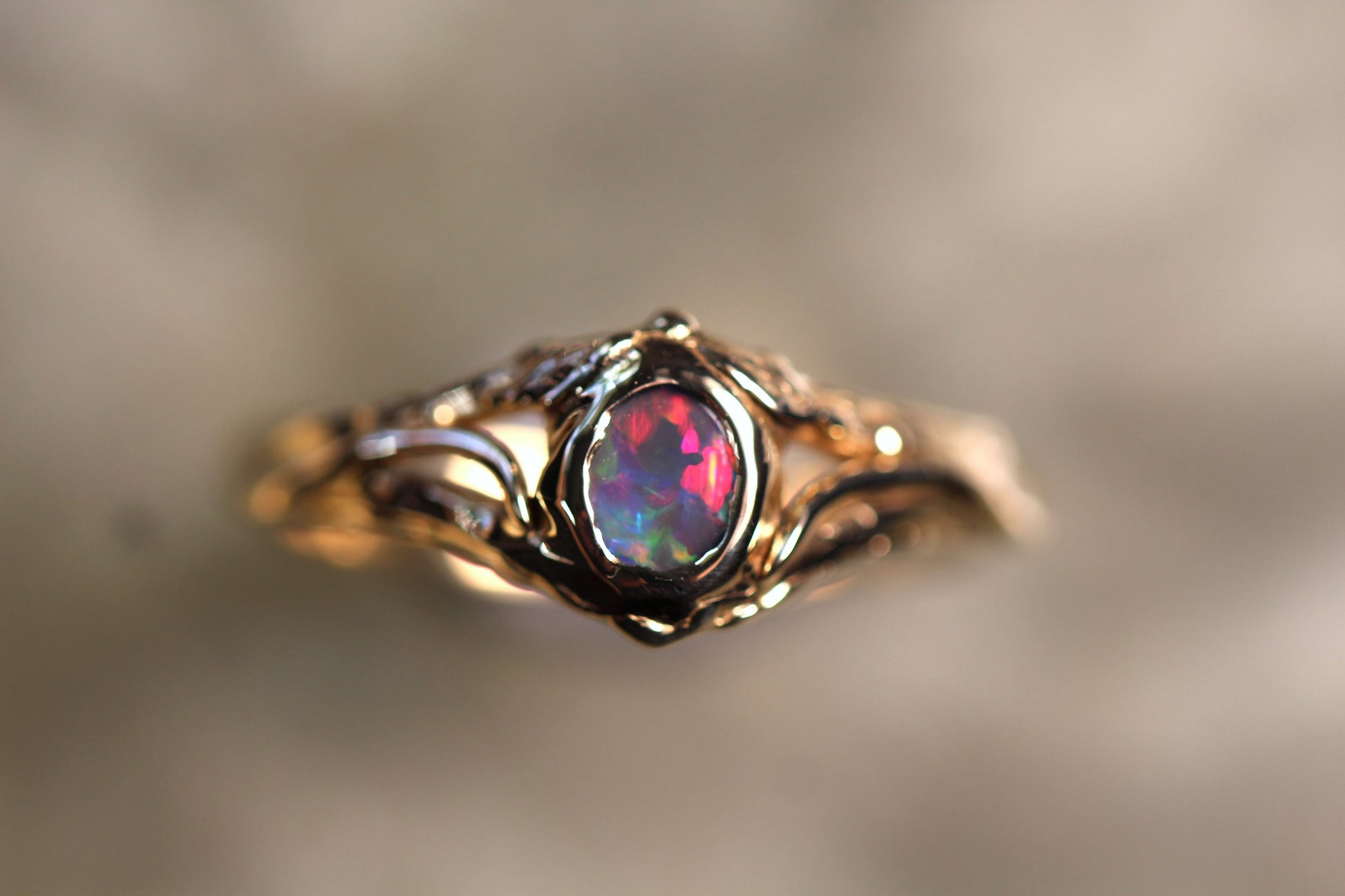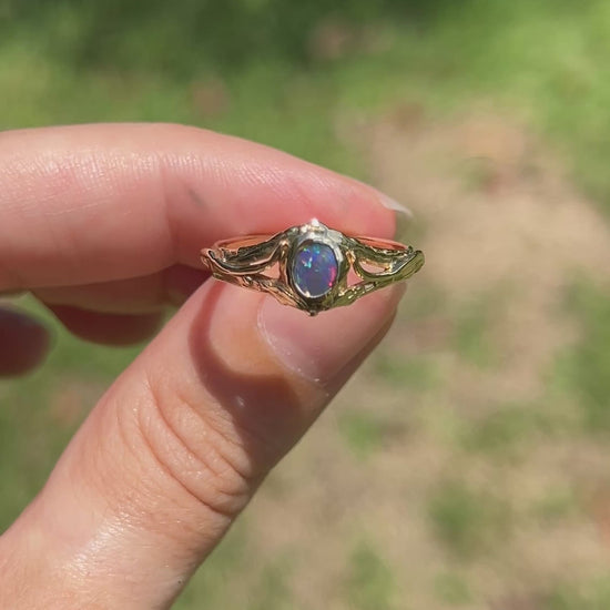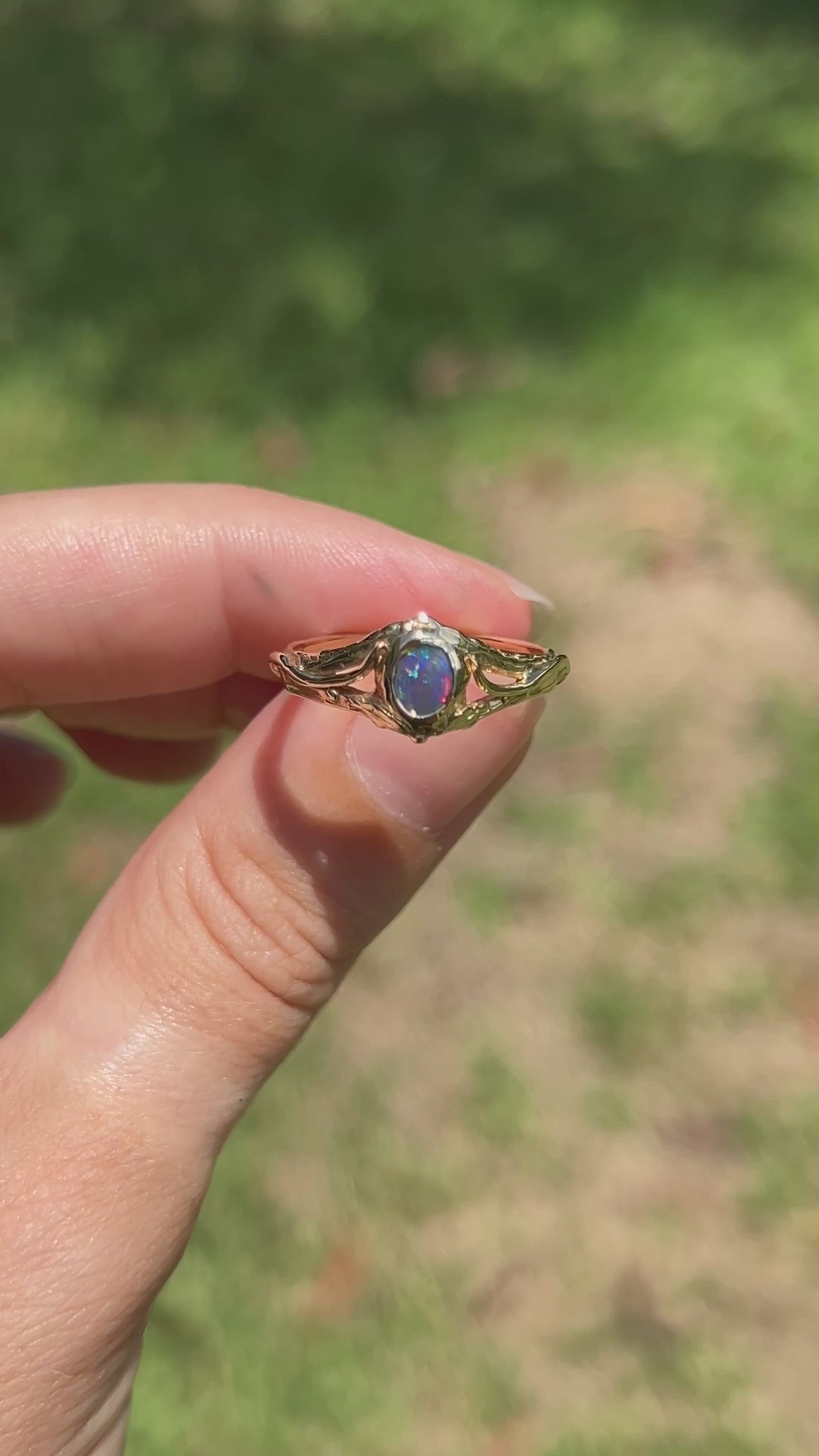 This Lightning Ridge Opal and Solid 9ct Yellow Gold ring was made by Australian Jeweller and Opal cutter Chloe Fraser.