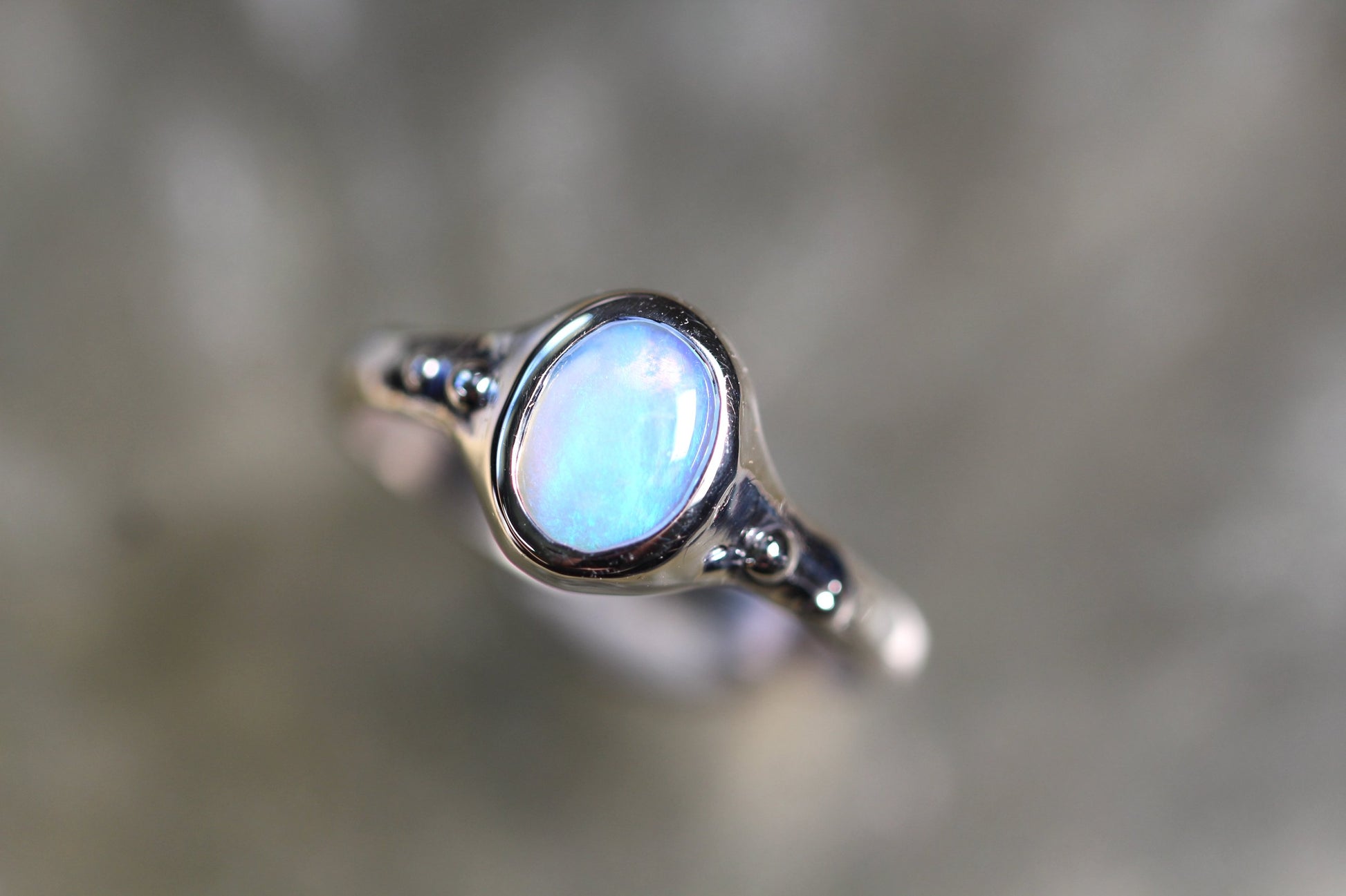 This LR Opal and Sterling Silver ring was made by Australian Jeweller and Opal cutter Chloe Fraser.