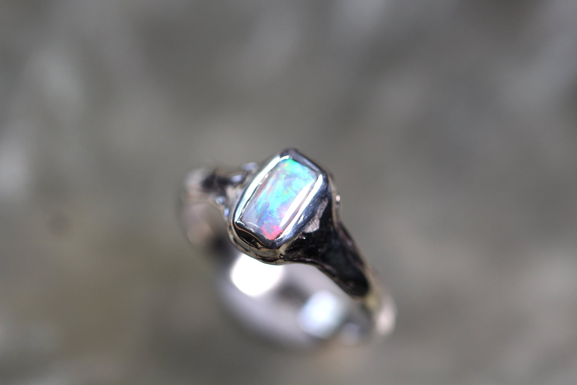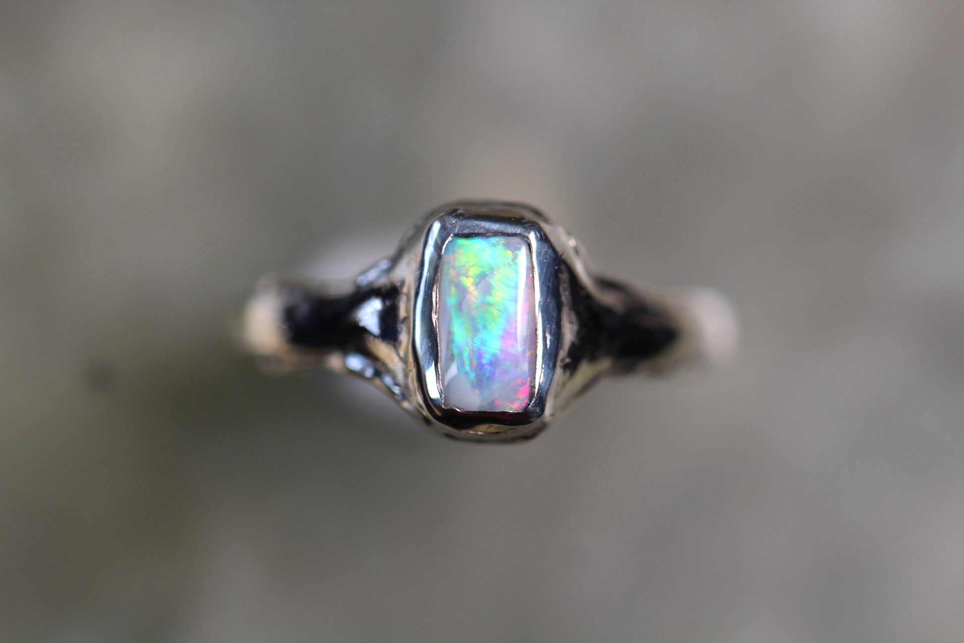 This LR Opal and Sterling Silver ring was made by Australian Jeweller and Opal cutter Chloe Fraser.