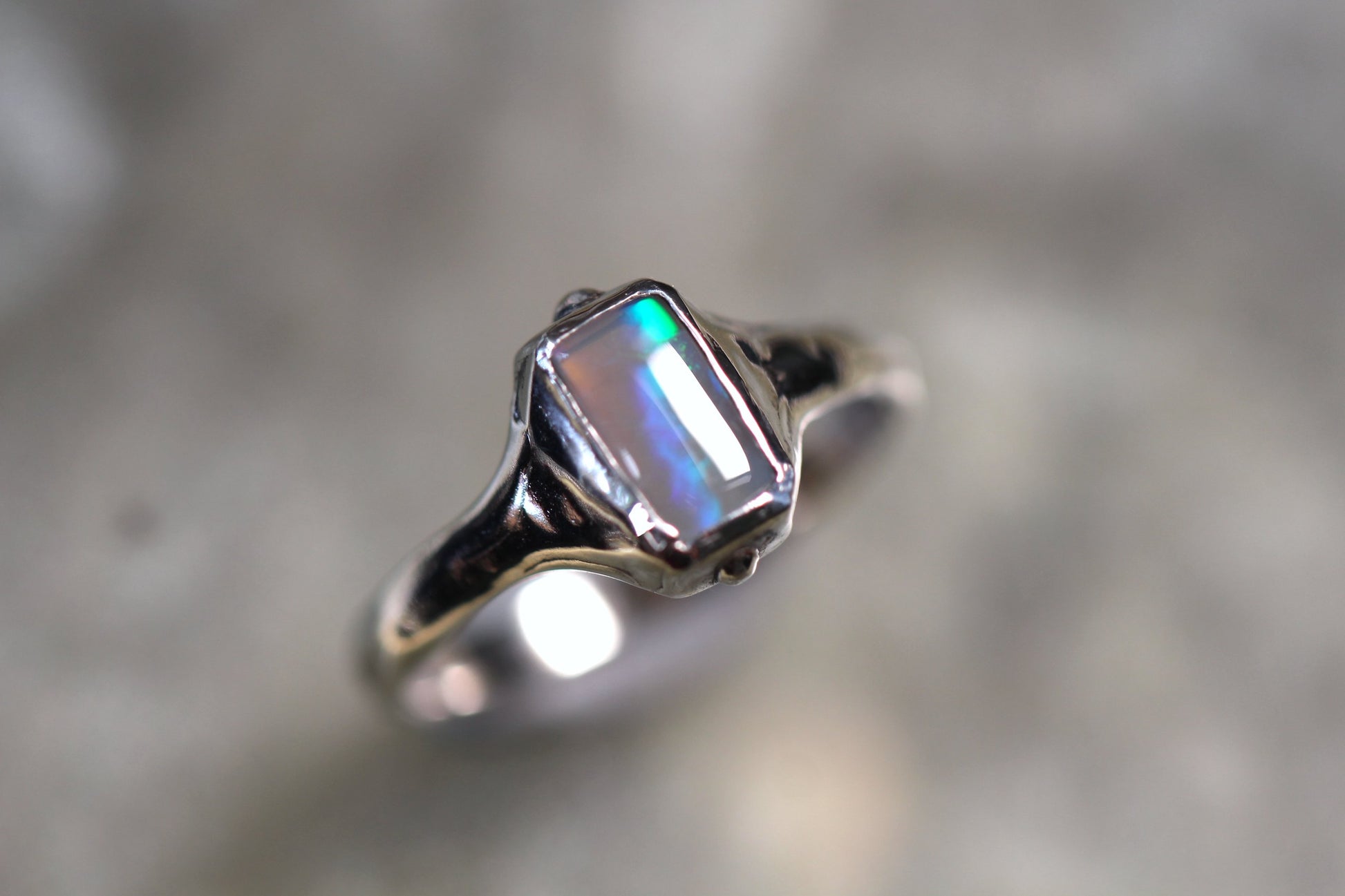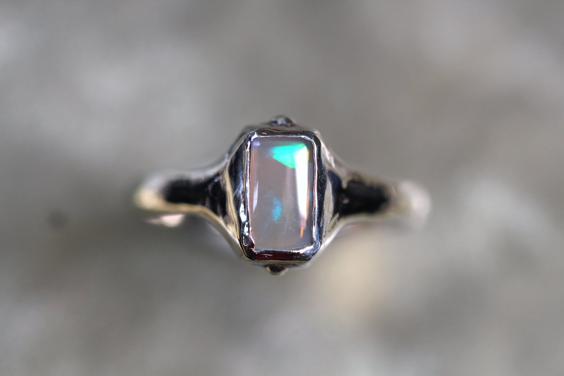 This LR Opal and Sterling Silver ring was made by Australian Jeweller and Opal cutter Chloe Fraser.