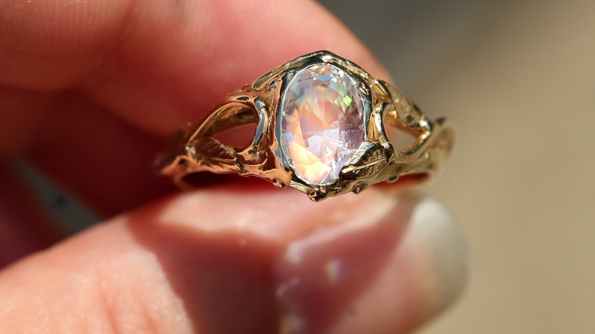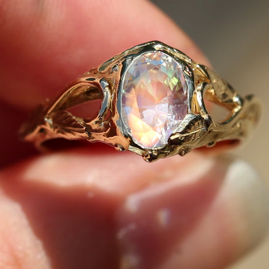 This 1.5ct high quality moonstone and Solid 9ct Yellow Gold ring was made by Australian Jeweller and Opal cutter Chloe Fraser.