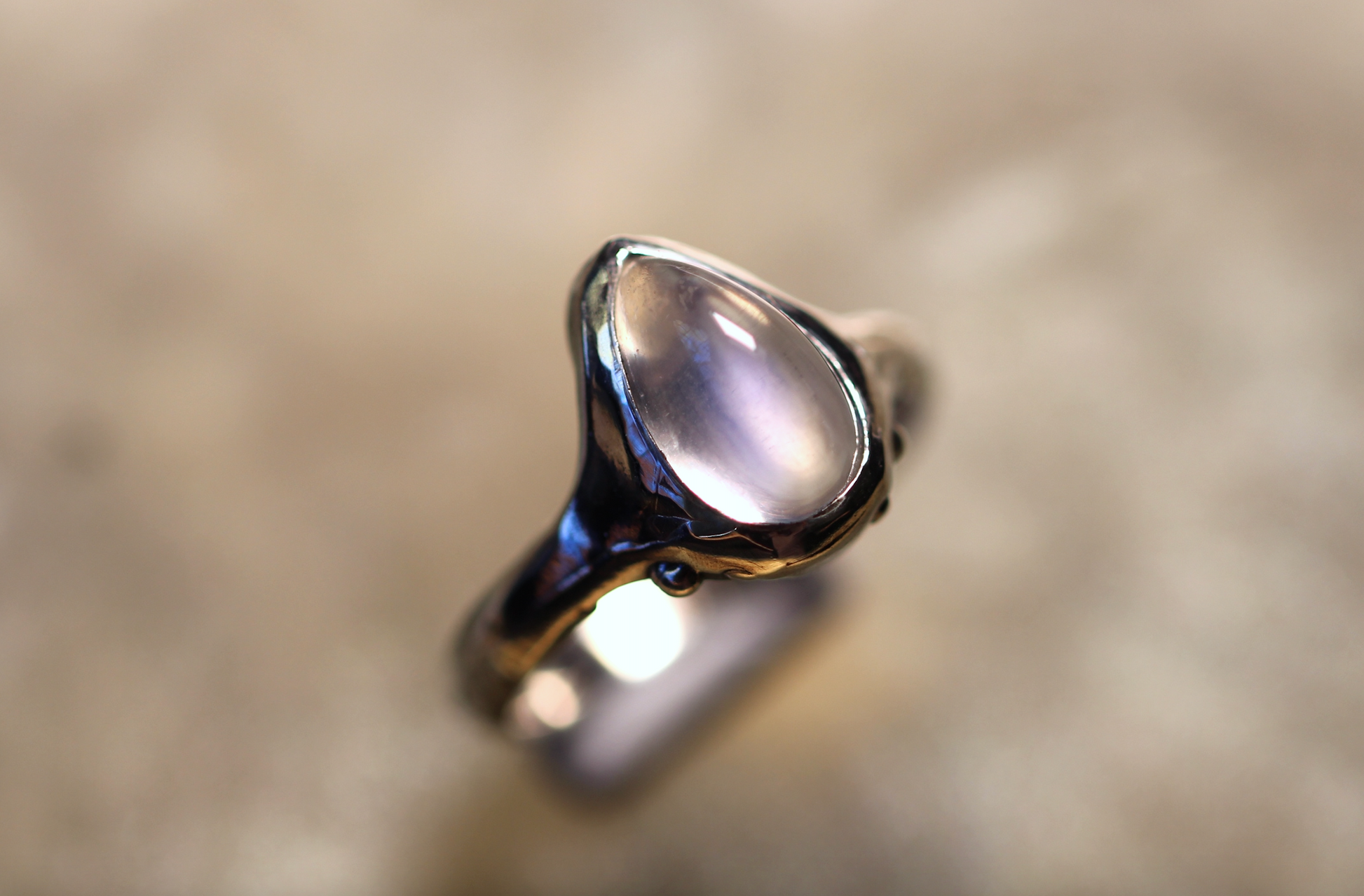 This Moonstone and Sterling Silver ring was made by Australian Jeweller and Opal cutter Chloe Fraser.