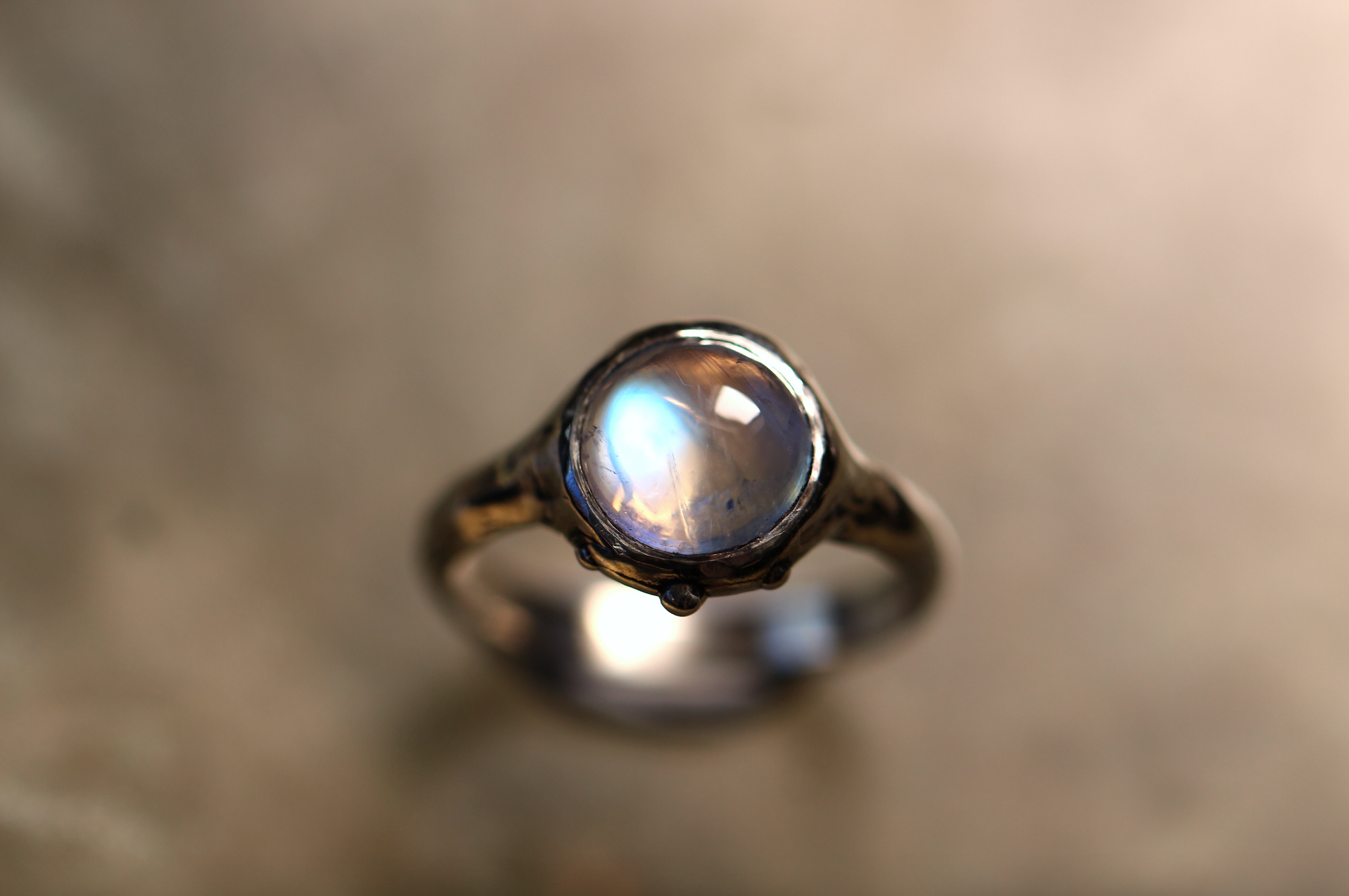 This Moonstone and Sterling Silver ring was made by Australian Jeweller and Opal cutter Chloe Fraser.